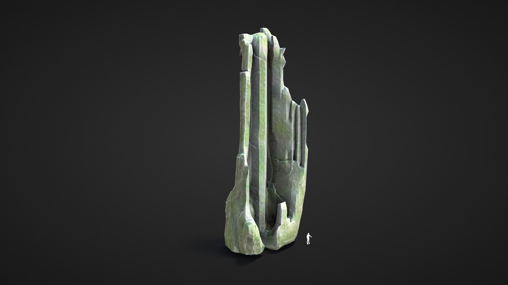 Lowpoly stylized ancient huge moss rock structure 3D model game asset